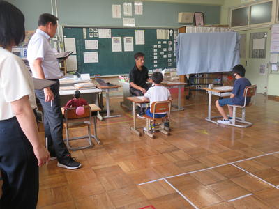参観中の齋藤指導主事さんにも自分の考えを話します。