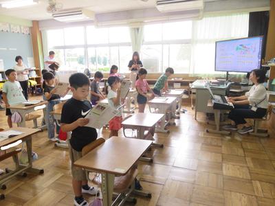 子どもたちは、楽しくくじらぐもを読みました。