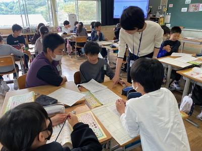 子どもたちは活発に自分の考えを発表しました。先生の問い返しで子どもたちは考えをさらに深めていきました。