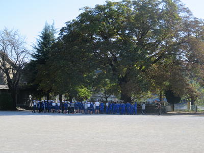 校庭でレクレーション、やはり小野の子どもたちはとちの木の下に集合です。楽しい時間を過ごしました。