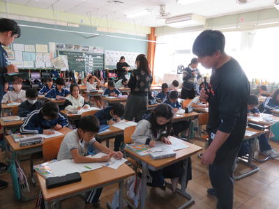北中2年生の4名が職場体験に来てくれました。子どもたちと勉強したり、一緒に遊んだり、就学時検診のために玄関を掃除したり、職場としての小野小の2日間を楽しんでくれました。子どもたちのお手本でした。ありがとうございました。