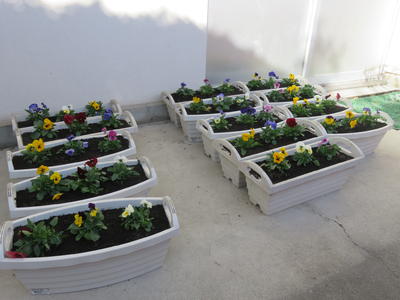 彩りよいプランターが出来上がりました。花いっぱい運動ありがとうございます。小野小学校が花いっぱいになります。