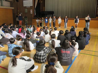 児童企画委員会が後期人権集中学習のまとめに思いやり集会を開きました。各クラスの取組を代表児童が発表しました。これからも人権意識を高めながらみんなが楽しく一生懸命になれる小野小学校にしていきましょう。全校児童のありがとうの気持ちが大きな「ありがとうの木」になりました。